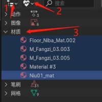 在Blender中如何为多个模型同时赋予同一个材质球: 先选中需要赋予材质的模型,再选中已有该材质的模型。 材质球>>选择对应的材质球>>复制材质到选中项。