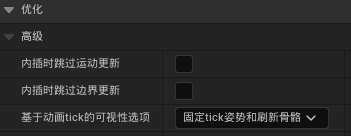 6、选择网格体(CharacterMesh0)>>细节>>优化>>基于动画tick的可视性选项>>固定tick姿势和刷新骨骼