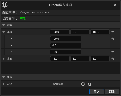将生成的.abc文件导入到UE5中,导入选项设置如下:
